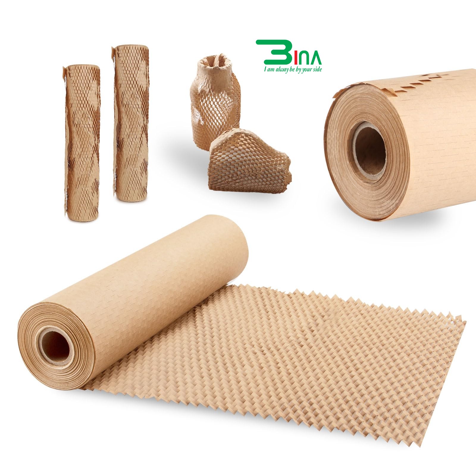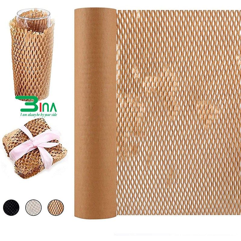 Giấy gói tổ ong/giấy gói tổ ong/giấy kraft tổ ong/giấy kraft tổ ong là một cuộn giấy kraft được gia công thành giấy tổ ong, được kéo căng thành khối tổ ong có các góc, lót một lớp giấy trắng mềm và ép thành ba lớp. Lớp lót tổ ong nhiều chiều vật được bọc không dễ rò rỉ và trầy xước, có tác dụng đệm và bảo vệ tốt.